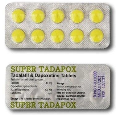 В 1 таблетке Super Tadapox содержится 40 мг тадалафила (Сиалиса) плюс 60 мг дапоксетина. Первый компонент является специфическим ингибитором ФДЭ-5. Он блокирует выработку фермента, который вызывает расслабление полового члена. Результат – устойчивая эрекция, возможность провести несколько половых актов в течение 36 часов.